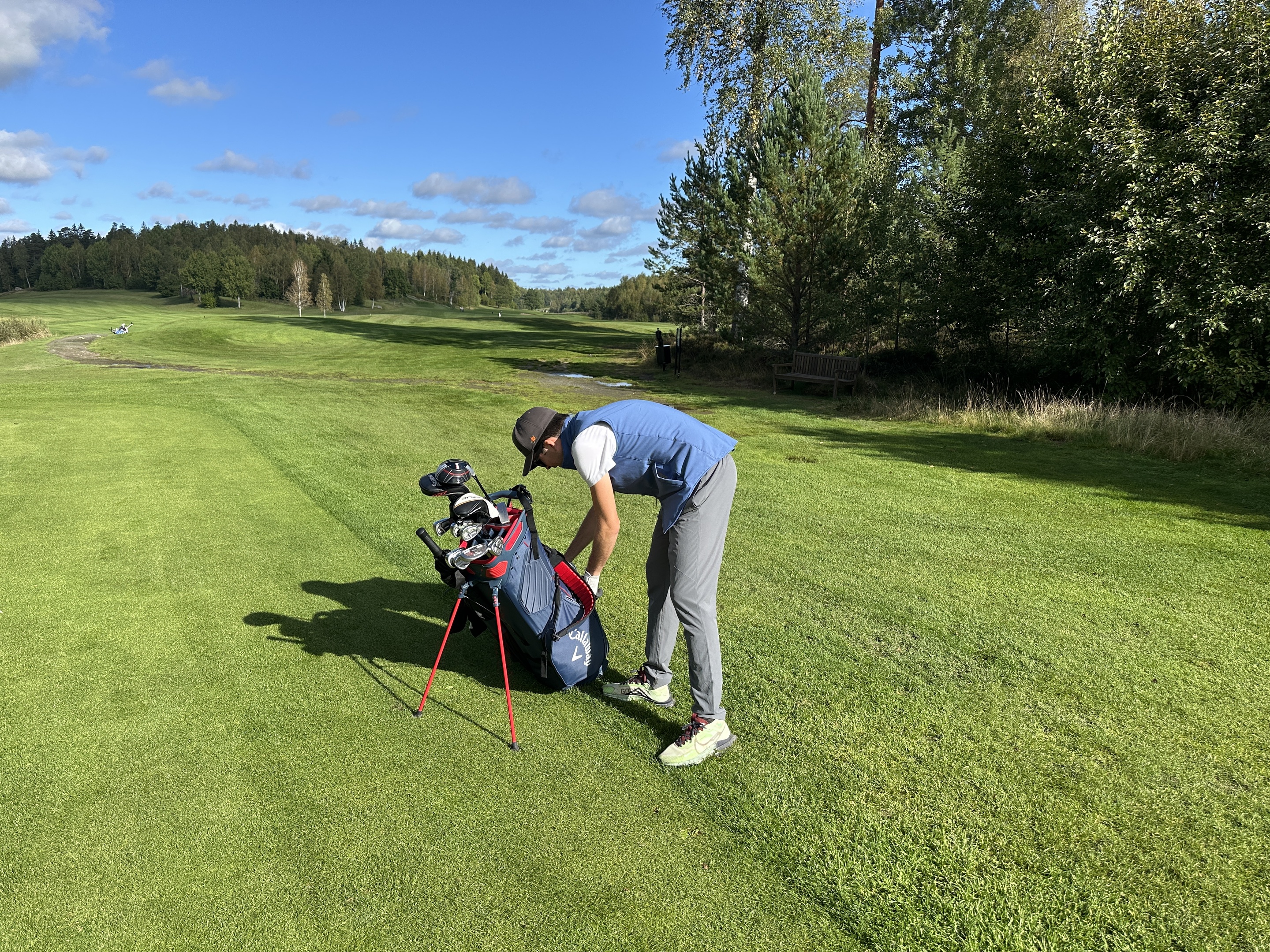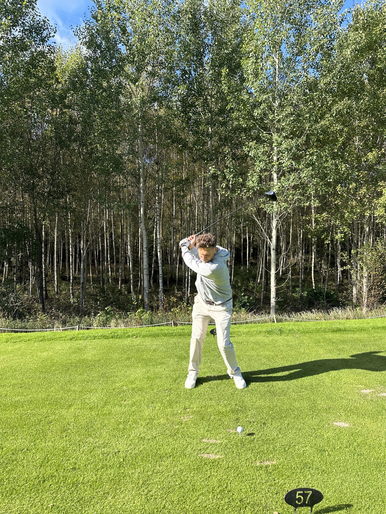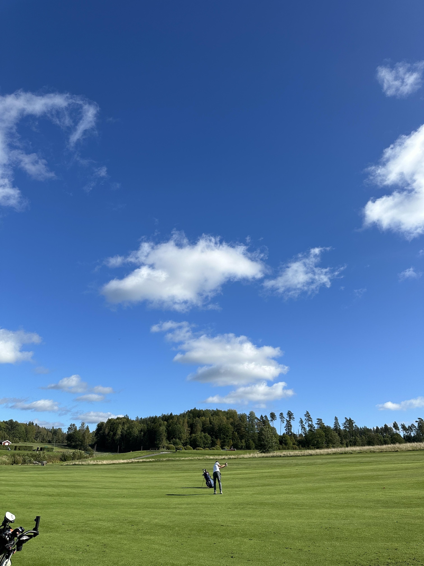 Hösten visade sig från sin allra bästa sida. Efter gårdagens regn och blåst hade banan torkat upp, solen strålade och vi kunde njuta av rundan i kortärmat. Banans skick var imponerande, både fairways och greener höll riktigt hög klass och gjorde spelupplevelsen extra rolig.
